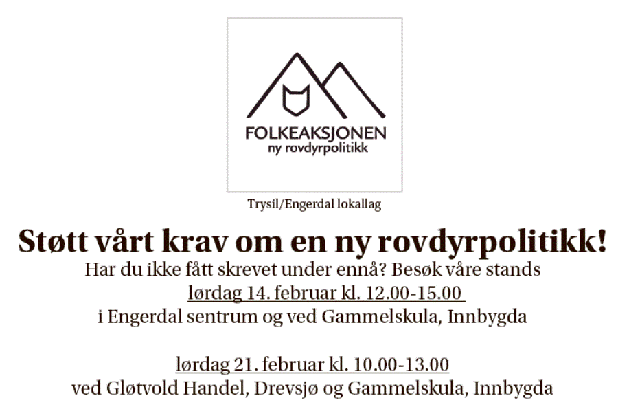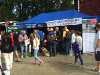 Folkeaksjonens stand på jakt og fiskedagene på skogmuseet i Elverum var som vanlig godt besøkt, også på årets messe. I tillegg hyggelige besøk av hundrevis av våre hyggelige medlemmer fikk vi løpet av dagene meldt inn 301 nye medlemmer i Folkeaksjonen ny rovdyrpolitikk.