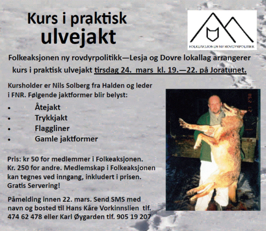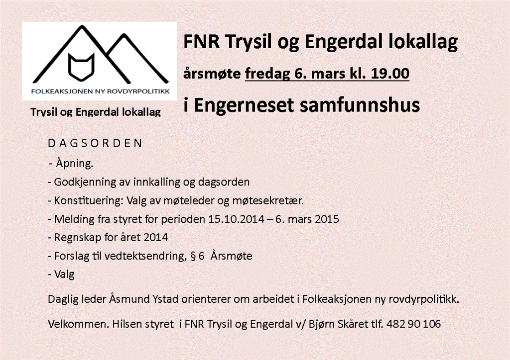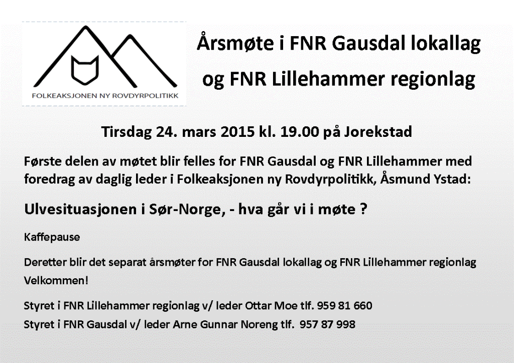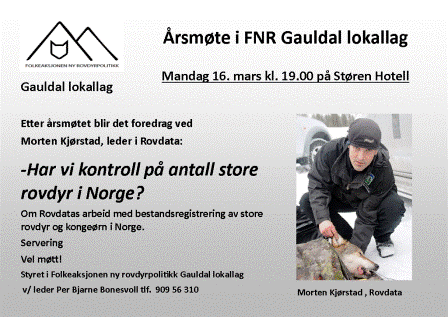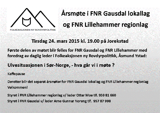 FNR Lesja og Dovre, årsmøte tirsdag 24. mars kl. 18.00 på Joratunet.