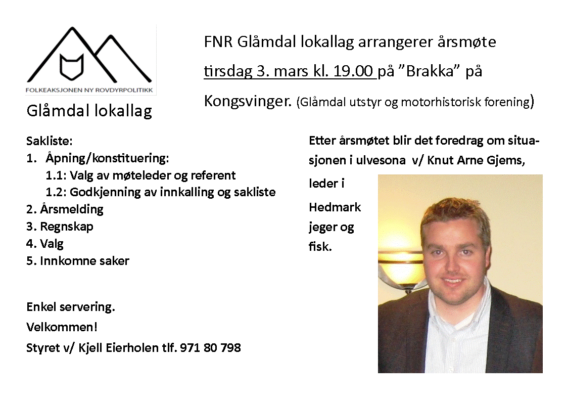 Årsmøte tirsdag 3. mars kl. 19.00 på "Brakka" på Kongsvinger - program .