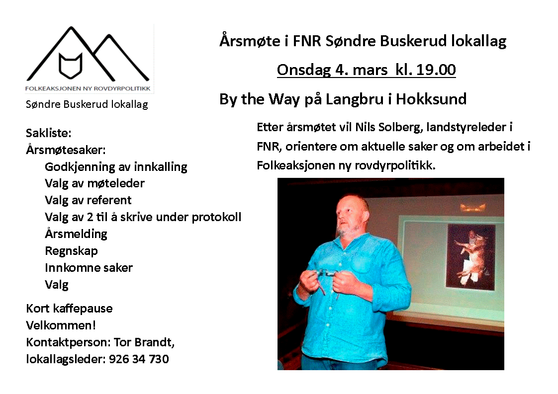 Årsmøte onsdag 4. mars kl. 19.00, Bay the Way på Langebru i Hokksund - program .