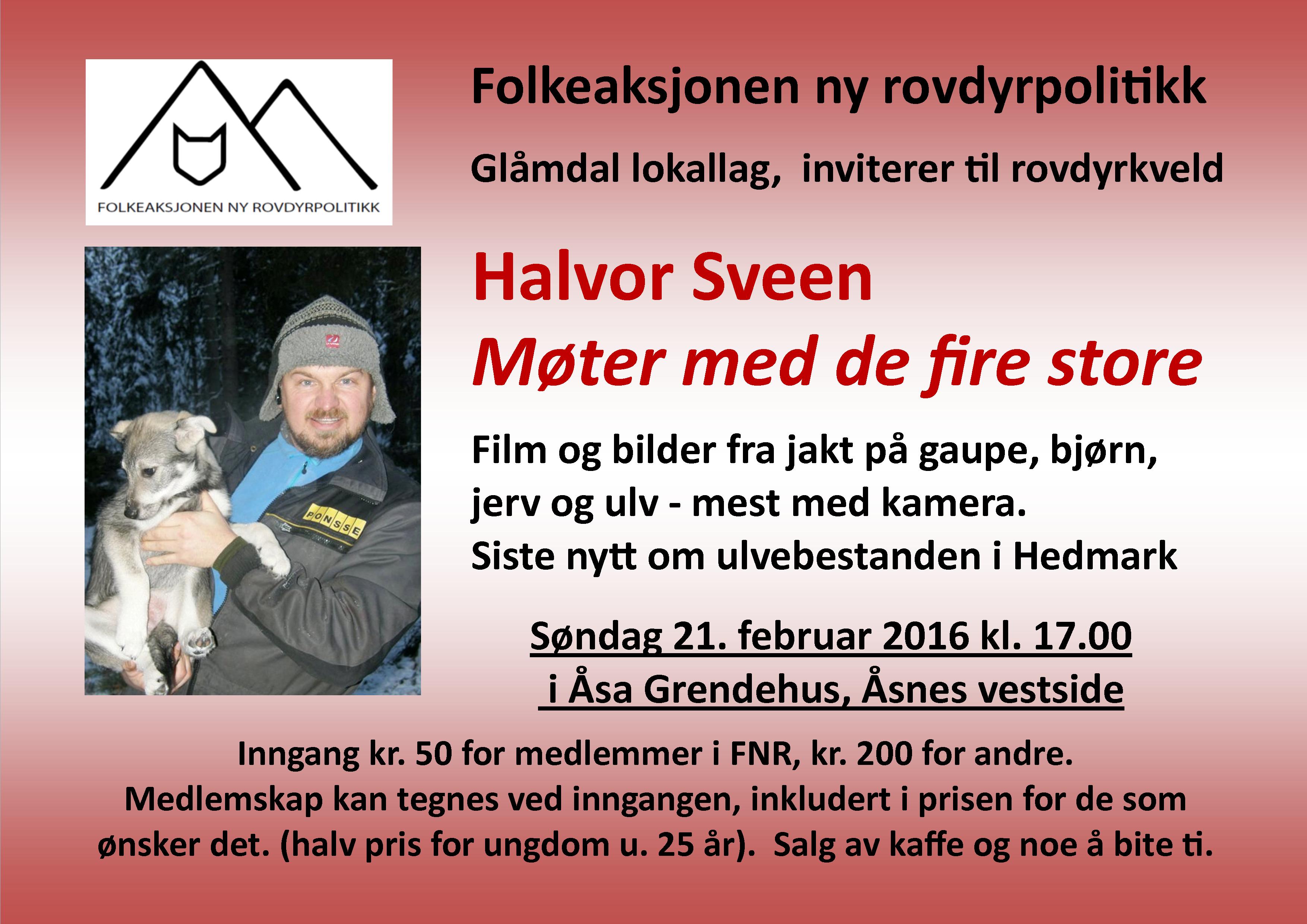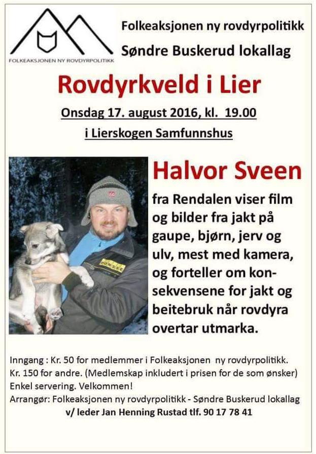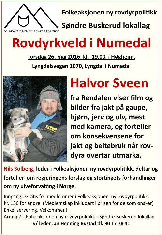 FNR Hallingdal inviterer til åpent møte med foredrag om rovdyrjakt med Rasmus Bostrøm på Gol Bedehus torsdag 21. april kl. 21.00