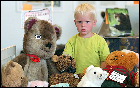 Leve med rovdyr: Den skal tidlig krøkes som god krok skal bli. Koserovdyr i stoff og papp skal sikre økt forståelse for rovdyrene på en faktabasert og saklig måte. ( Bildet er fra en utstilling under den internasjonale bjørnekonferansen i Steinkjer i 2002, der temaet var sameksistens mellom mennesker og bjørn). Foto Lars Erik Brattås