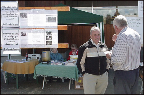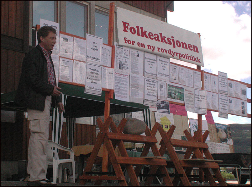 Mens Kong Harald og miljøvernminister Børge Brende åpnet Dovrefjell-Sunndalsfjella nasjonalpark, hadde Folkeaksjonen for en ny rovdyrpolitikk stand i Dombås sentrum med informasjon og verving av medlemmer. Grillede lammekoteletter med salat, kringle og kaffe ble servert. Lesja Sau- og Geitalslag møtte mannsterke opp og hadde også stand.