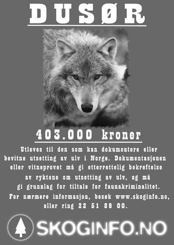 Det sier næringspolitisk sjef i NORSKOG, Gaute Nøkleholm, etter å ha arbeidet ett år med problematikken. For ett år siden gikk internettportalen skoginfo.no ut med tilbud om en dusør på 100.000 kroner til den som kunne bevise at ulv var utsatt i Norge. Bakgrunnen var at portalen som møtested for jegere, fiskere og skogbrukere og andre ble kontaktet av flere personer som hevdet at utsetting hadde foregått. Siden har det strømmet inn både med tips samt penger fra lag og organisasjoner over hele landet.