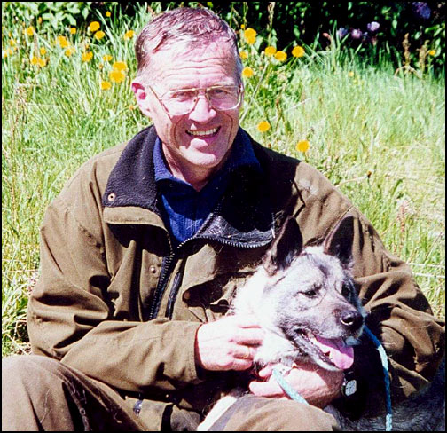 €€ Lars Ingar Toverud, her sammen med bikkja Fara, ble Norges ivrigste ulvemotstander etter av ulvene rensket skogene lenger sør for elg og jaktbikkjer. Nå opplever han også ulven like ved setra i Vendalen i Sør-Fron.